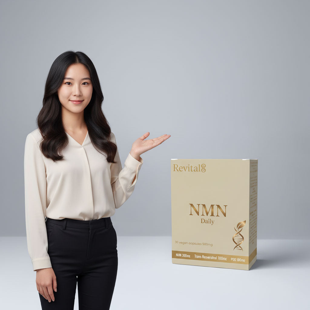 Revital8 combines three patented, science-backed ingredients that work in perfect synergy to support energy, vitality, and longevity. NMN from yeast powder boosts NAD⁺ levels to recharge cellular energy and repair. Trans-Resveratrol from grape skin extract amplifies NMN’s effects by activating natural longevity pathways and protecting cells from oxidative stress. PQQ from dragon fruit fermentation powder promotes new mitochondrial growth for greater endurance and mental clarity. Together, they deliver a powerful, natural boost to help you feel younger, stronger, and more energized from within.